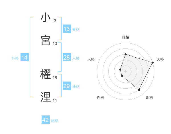 小宮 櫂浬さんの総格は42画の3点!