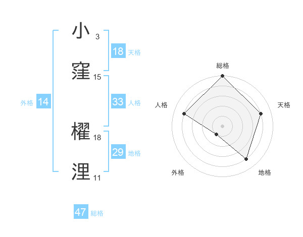 小窪 櫂浬さんの総格は47画の5点!