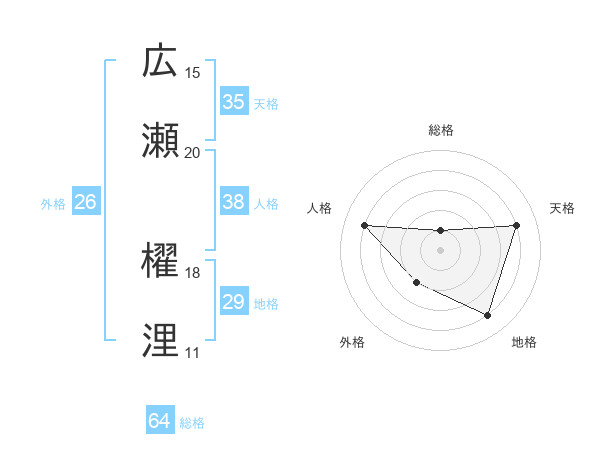 広瀬 櫂浬さんを姓名の画数から五運を鑑定