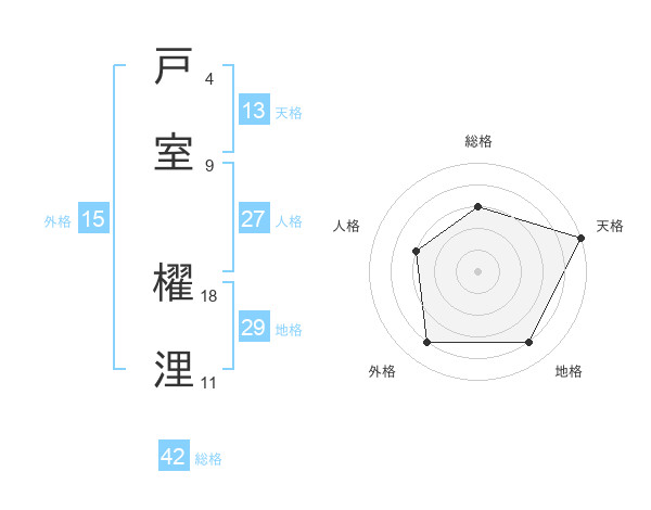 戸室 櫂浬さんの総格は42画の3点!