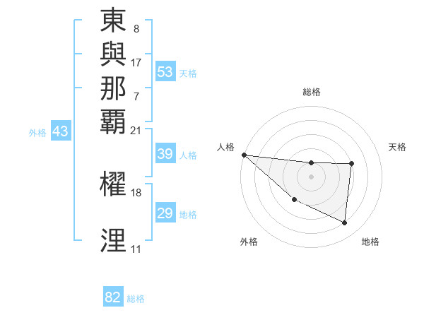 東與那覇 櫂浬さんの総格は82画の1点!
