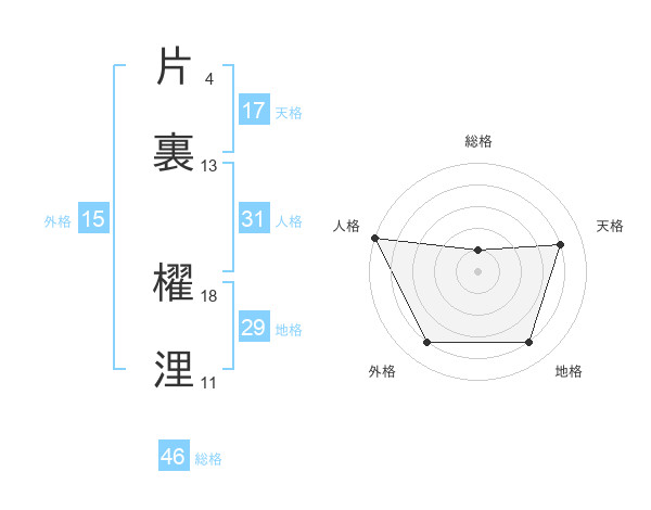 片裏 櫂浬さんを姓名の画数から五運を鑑定