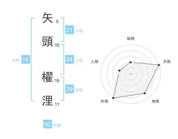 矢頭 櫂浬さんの総格は50画の2点!