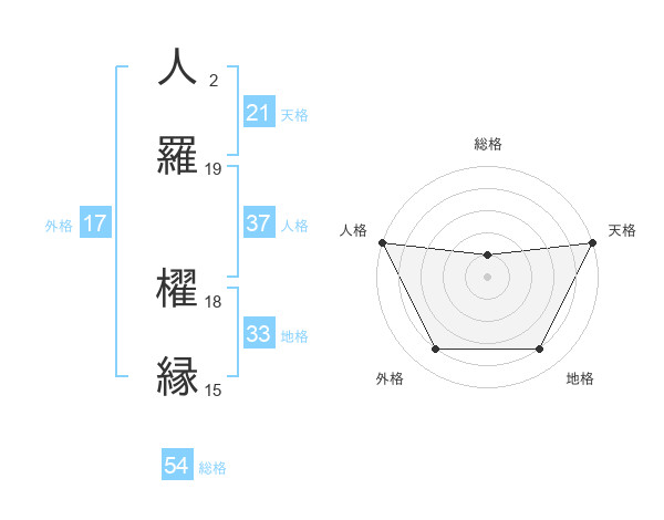 人羅 櫂縁さんの天格は21画の5点!