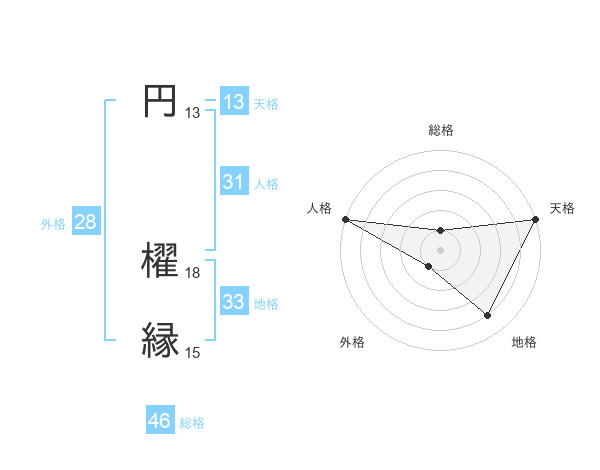円 櫂縁さんの天格は13画の5点!