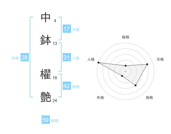 中鉢 櫂艶さんを姓名の画数から五運を鑑定
