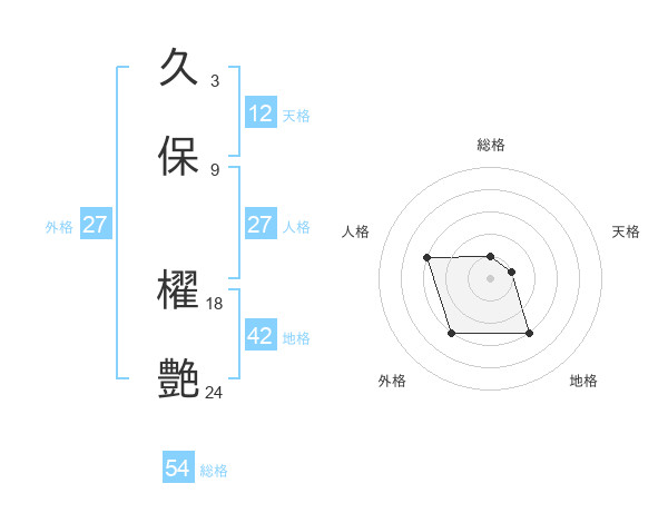 久保 櫂艶さんの外格は27画の3点!