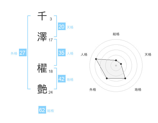 千澤 櫂艶さんの天格は20画の1点!