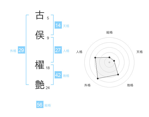 古俣 櫂艶さんの総格は56画の1点!