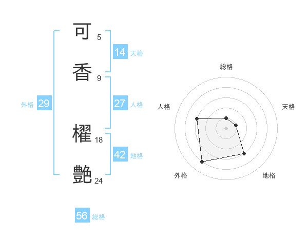 可香 櫂艶さんを姓名の画数から五運を鑑定