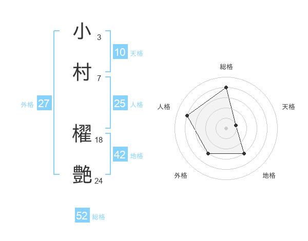 小村 櫂艶さんを姓名の画数から五運を鑑定