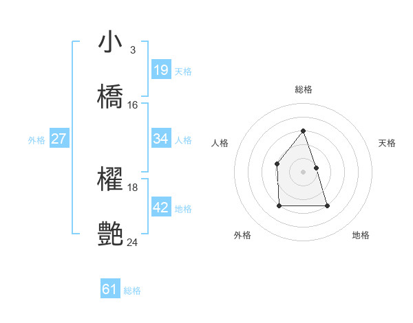 小橋 櫂艶さんの総格は61画の3点!