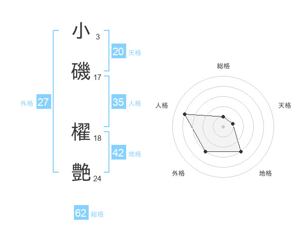 小磯 櫂艶さんの天格は20画の1点!