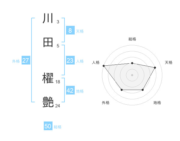 川田 櫂艶さんを姓名の画数から五運を鑑定