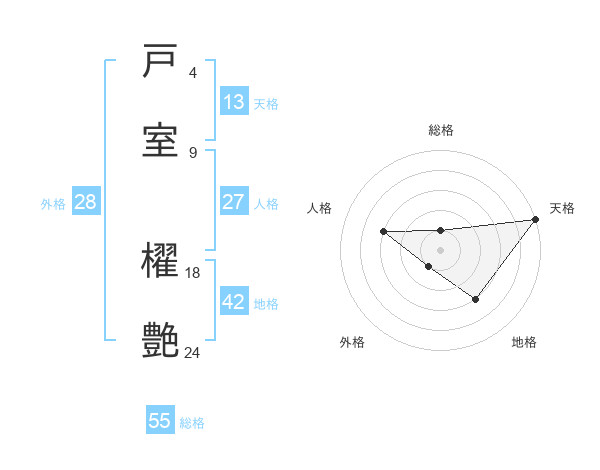 戸室 櫂艶さんを姓名の画数から五運を鑑定