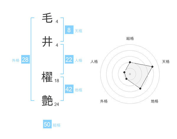 毛井 櫂艶さんを姓名の画数から五運を鑑定