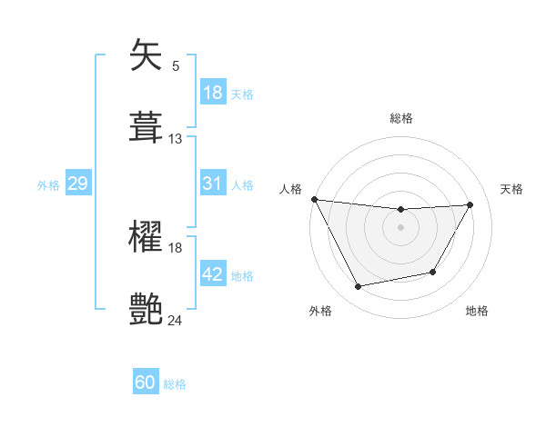 矢葺 櫂艶さんの総格は60画の1点!