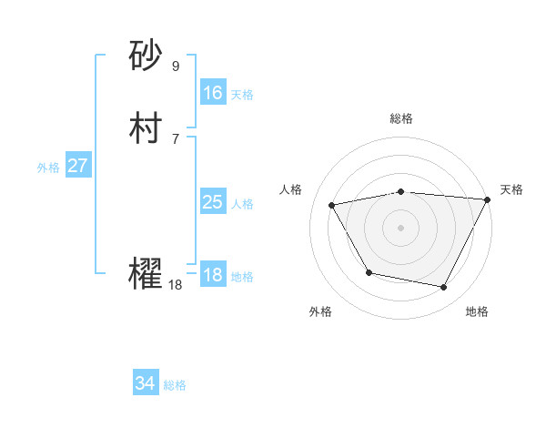 砂村 櫂さんの総格は34画の2点!