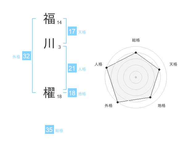 福川 櫂さんの総格は35画の4点!