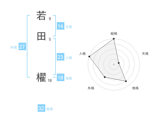 若田 櫂さんの外格は27画の3点!