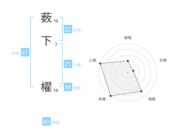 薮下 櫂さんの外格は37画の5点!