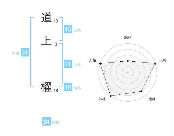 道上 櫂さんの総格は34画の2点!