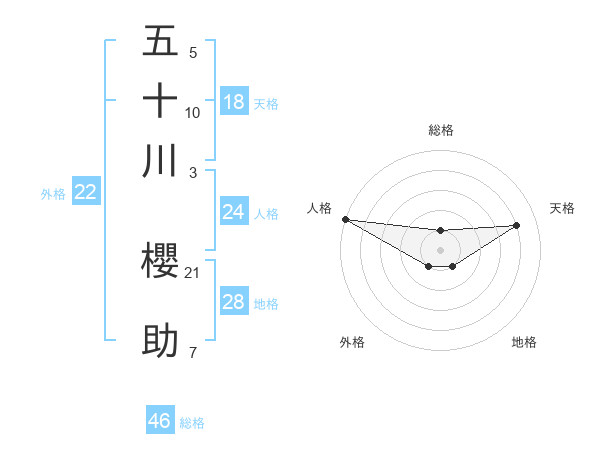 五十川 櫻助さんを姓名の画数から五運を鑑定