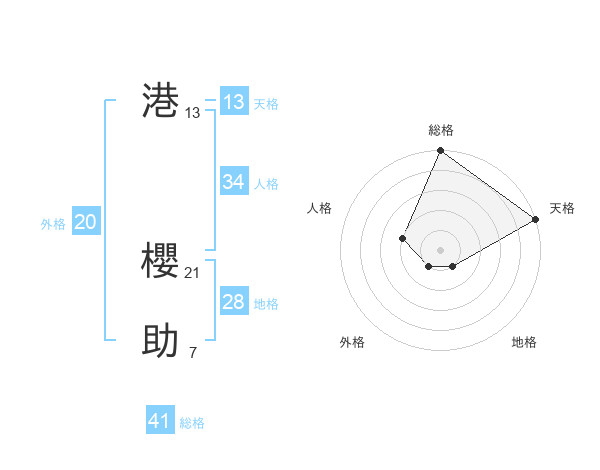港 櫻助さんの総格は41画の5点!