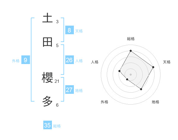 土田 櫻多さんを姓名の画数から五運を鑑定