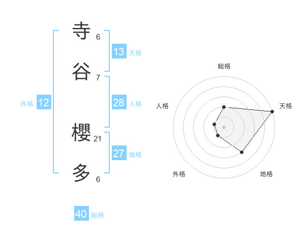 寺谷 櫻多さんを姓名の画数から五運を鑑定