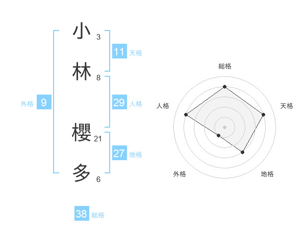 小林 櫻多さんの総格は38画の4点!