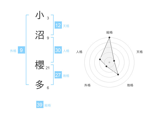 小沼 櫻多さんを姓名の画数から五運を鑑定