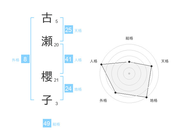 古瀬 櫻子さんを姓名の画数から五運を鑑定
