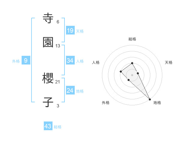 寺園 櫻子さんを姓名の画数から五運を鑑定