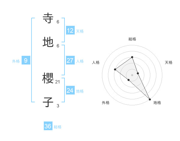 寺地 櫻子さんの天格は12画の1点!