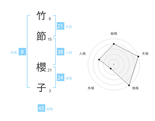 竹節 櫻子さんを姓名の画数から五運を鑑定