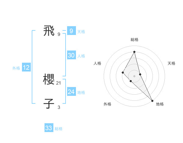 飛 櫻子さんの総格は33画の4点!