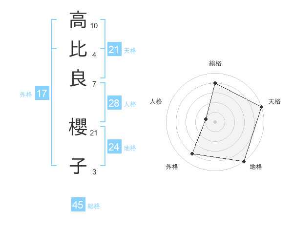 高比良 櫻子さんの天格は21画の5点!