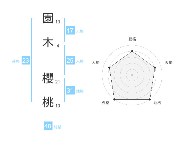 園木 櫻桃さんを姓名の画数から五運を鑑定
