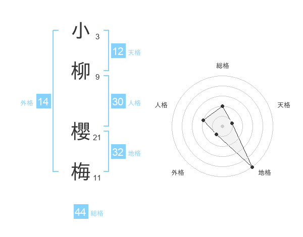 小柳 櫻梅さんの総格は44画の2点!