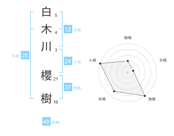 白木川 櫻樹さんを姓名の画数から五運を鑑定