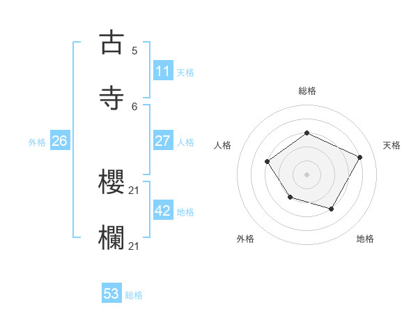 古寺 櫻欄さんを姓名の画数から五運を鑑定