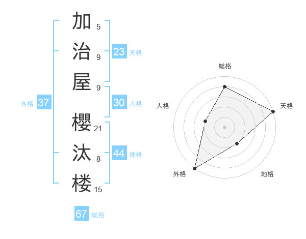 加治屋 櫻汰楼さんの外格は37画の5点!