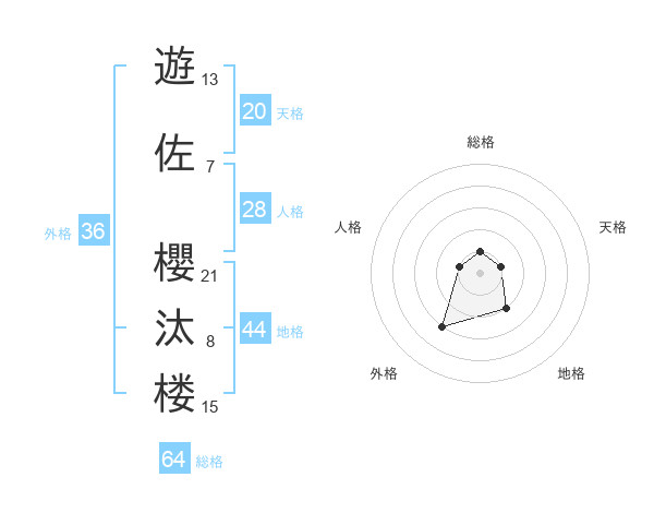 遊佐 櫻汰楼さんの総格は64画の1点!