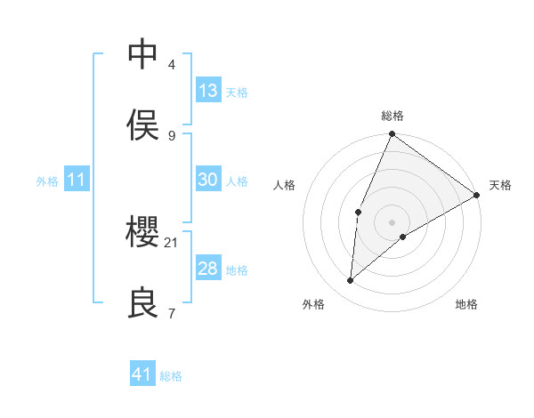 中俣 櫻良さんを姓名の画数から五運を鑑定