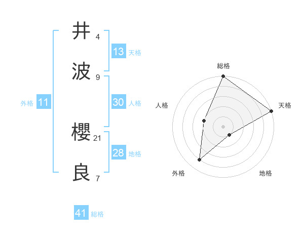 井波 櫻良さんの総格は41画の5点!