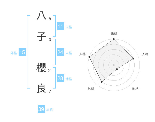 八子 櫻良さんの総格は39画の5点!