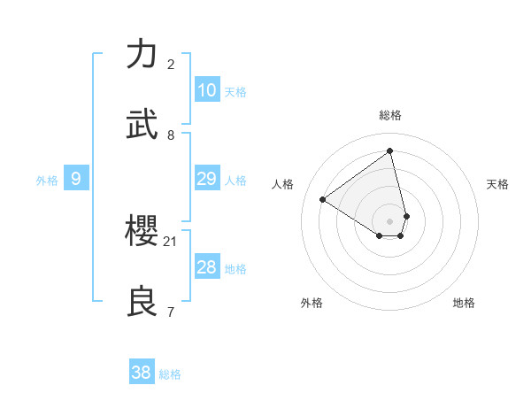 力武 櫻良さんを姓名の画数から五運を鑑定