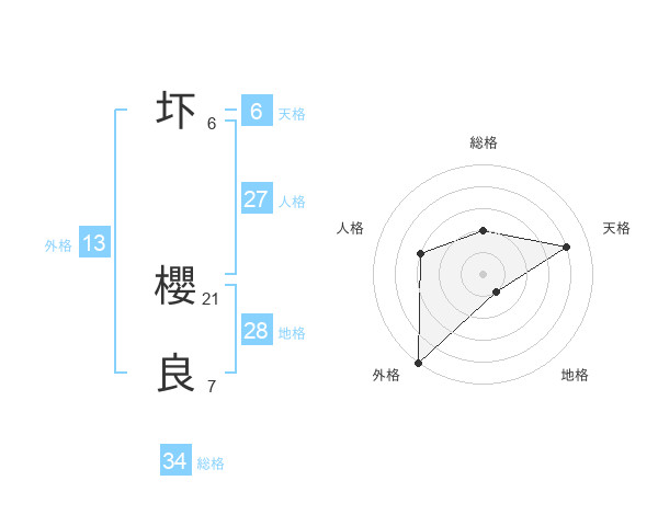 圷 櫻良さんの外格は13画の5点!