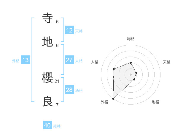 寺地 櫻良さんの外格は13画の5点!